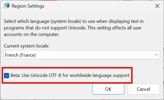 Beta: Use Unicode UTF-8 for worldwide language supportbox.